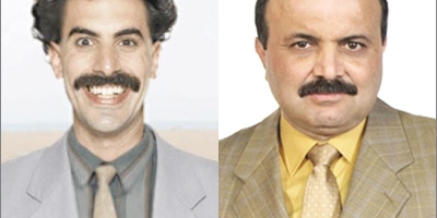 Borat is the happy chappie. Toni Abela must be the grim figure on the right, shoulder just slightly listing from that chip he’s been carrying for so long.