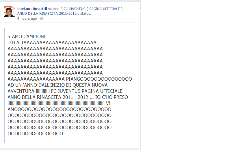 I support Juventus, and yes, I was overjoyed last Sunday when Juve won the league, but not to the point of lunacy.