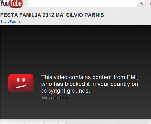 And here’s Silvio Parnis – with his FestaFamilja YouTube video blocked for breaching copyright