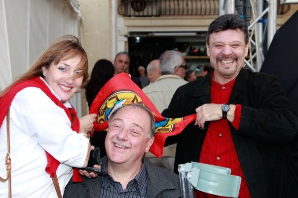 Put away that flag at once, Marlene. It's against the rules. Perhaps you can tuck it beneath Renato's wig, qabel ma jerga jmut ghall-barrani.