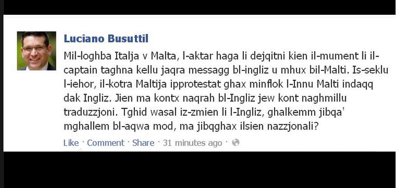 Luciano Busuttil the cabinet minister: he wants to get rid of English, and despite being an adult, a lawyer and a senior politician, he doesn’t know the difference between a national language and an official one.