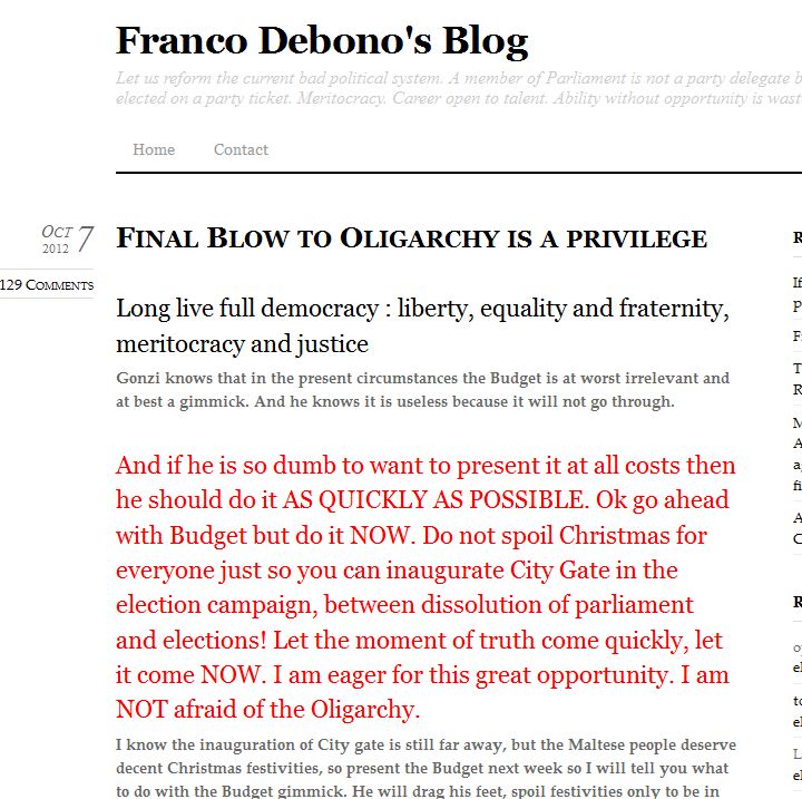 Franco Debono is envy of Lawrence Gonzi’s achievements. If Franco was patient ,one day he would have had his successes. Now he lost his opportunity and has only the Form IIC certificate to show.