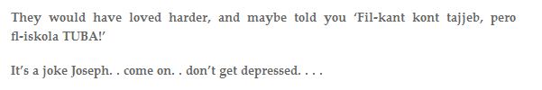 They would have loved harder, and maybe told you ‘Fil-kant kont tajjeb, pero fl-iskola TUBA!’