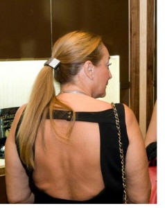 Fortunately, a friend had to hand a photograph of the lady in the exact same dress and hairstyle that she wore on the night in question.