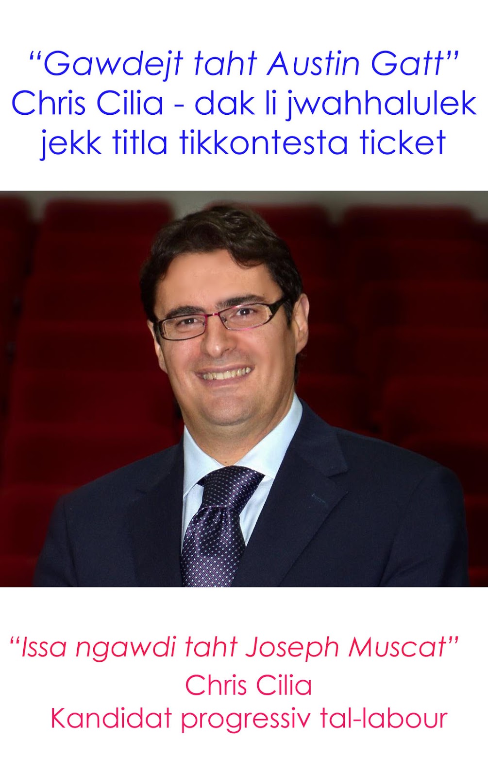 Now, because he thinks labour will soon be in power he posts kocc hdura against Austin Gatt on his Facebook page. Chris Cilia: Austin Gatt ghamlek nies!