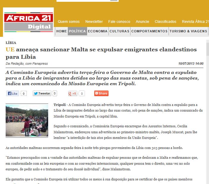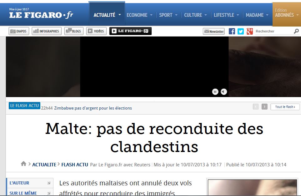 The first paragraph under ‘Breves’ of the Affaires-strategiques.info should be read carefully. The last sentence says that although Italy and Malta have many times brought the attention of the other EU menbers that they require help with this situation, it appears that it has fallen on deaf ears. So we should keep on pressurising our other EU member states to understand our situation without at any time falling short of our international obligations.