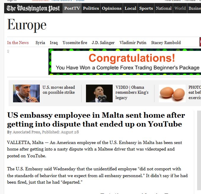 If the American guy was fed up to here in Malta, he could have asked to be transferred to Saudi Arabia, Syria or Egypt.