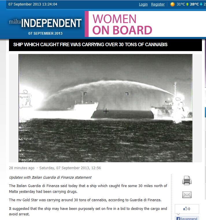 Why was it 30 miles off Malta? Perhaps the ship had a rendezvous with a boatload of “irregular” refugees conveniently supplied with satellite cell-phones to arrange a “rescue” at sea and later landing them in Malta as a profitable side-line to shipping tons cannabis all over the Med.