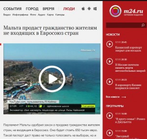 Moskva 24/Russia: ‘Malta to sell citizenship to non-EU nationals’