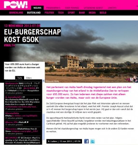 PowNed TV/The Netherlands: this is a site read mainly by under-40s. This piece speaks of buying citizenship in “picturesque Malta” for 650,000 euros – and look at the picture.