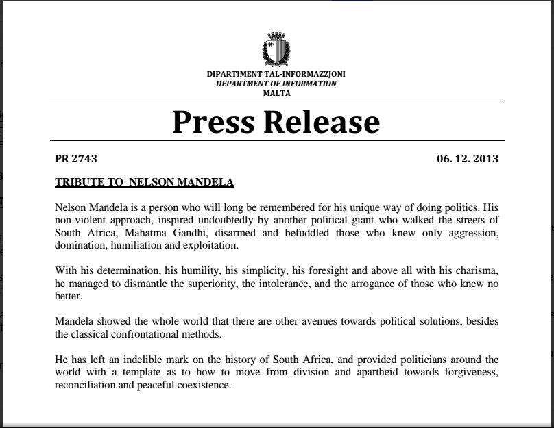I say it was only partly written in Maltese because it’s full of English cliches and contains phrases that are found in many websites about Mandela, e.g. “moved from division etc towards forgiveness, etc”.