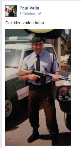 Ex PC1144 Paul Vella – known as Pawlu l-Machine Gun – retired from the police corps some years ago but Manuel Mallia had him reinstated into the force, still as a police constable, when he was made Police Minister last year.