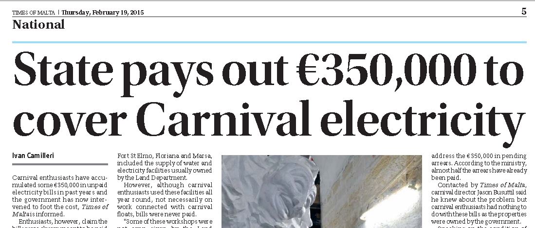 In Times of Malta’s print edition this morning – as though it’s not enough that the taxpayer is going to shell out Eur6 million to build them a giant playhouse because their leader works at Super One and is very ‘in’ with Joseph.