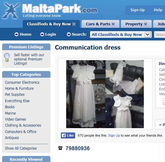 Because there’s at least one Communication dress for sale on Maltapark. Incidentally, have you noticed how the Imperial Twins have been taken out of the limelight? Somebody’s parents must have seen sense at last.
