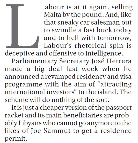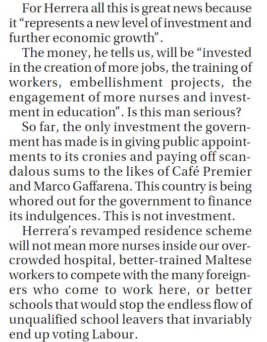 Ivan Fenech’s column in Times of Malta is excellent today.