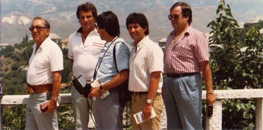 Left to right: Prime Minister Dom Mintoff, Michael Axisa aka Il-Laj Laj, Ronnie Agius, Tony Debono aka Anthony de Bono, and Norman Hamilton